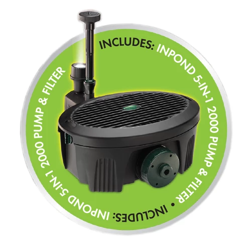 Inpond 5 in 1 (previously Inpond All in One) is a complete ‘life support system’ with decorative fountain features. It includes a pump, filter and LED. Clear water guaranteed