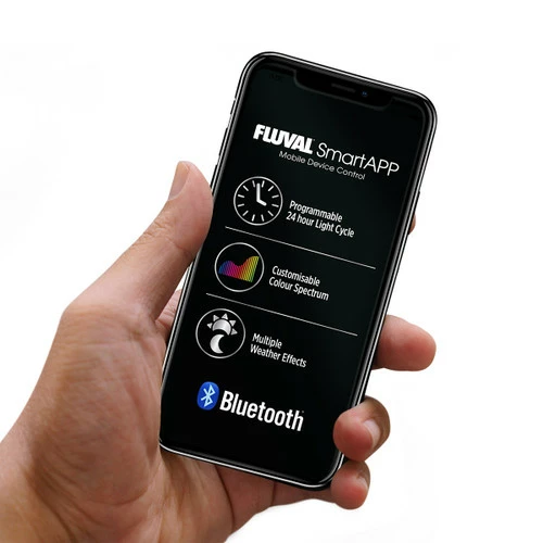 Bluetooth LED lighting with Aquasky LED technology. Light temperature, colour spectrum and intensity can be controlled using the FluvalSmart App via your iOS or Android device. A gradual 24-Hour light cycle and multiple weather effects allow for even greater customization, enabling you to recreate virtually any aquatic environment from around the world.