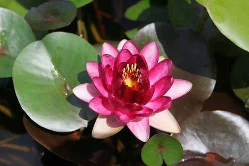 Plant in still water away from splashing fountains. Lower gradually so the leaves can stretch to the surface within a few days. Remove dead leaves and flowers during the growing season.