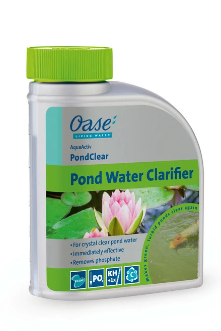 Dosage Instructions: Mix oase AquaActive PondClear in the required amount, (100 ml suffice for 2,000 litres of pond water) with 10 litres of tap water, and distribute the mixture over the pond surface with a watering can. Clean the filter before and after application of PondClear. Strictly ensure that you skim off the flocculated material that accumulates. If you do not, a lack of oxygen for fish can occur. If there is no flocculation due to the special characteristics of the water, the dose can be increased by 50%-100%. If an oxygen deficit was already present at the time of application, in extremely rare cases formation of toxic fermentation gas can occur. In this case use a filter with active charcoal depending on the size of the pond, or let the pond water run over a net bag filled with active charcoal until fish have recovered. In addition you must ensure aeration or use an oxygenating pump such as the Oase OxyPlus.